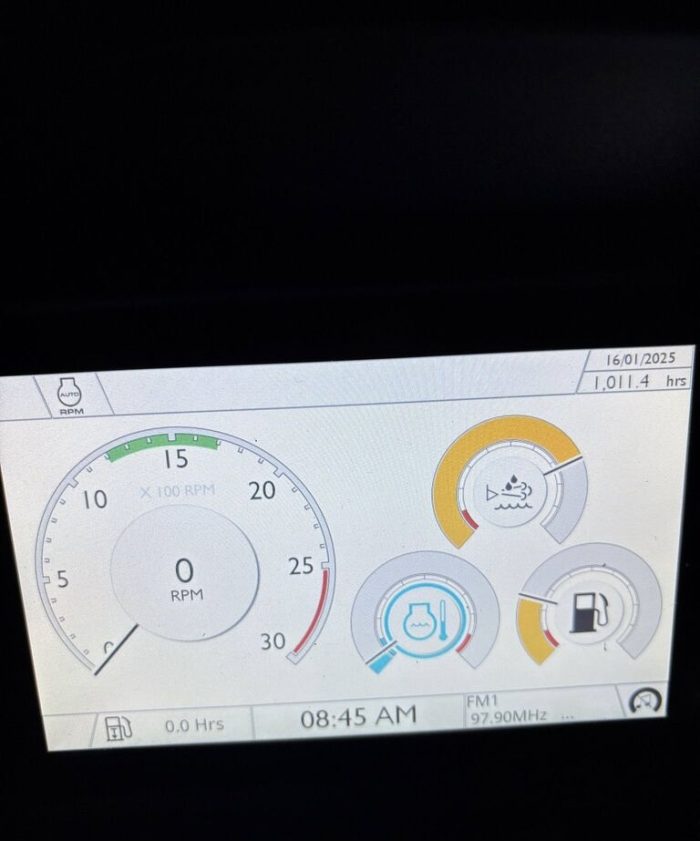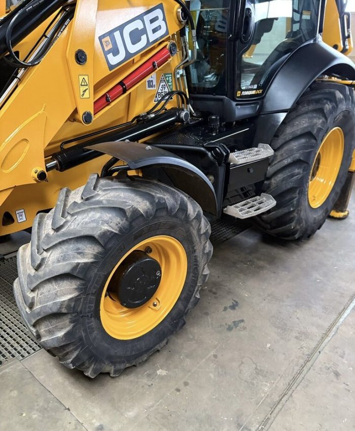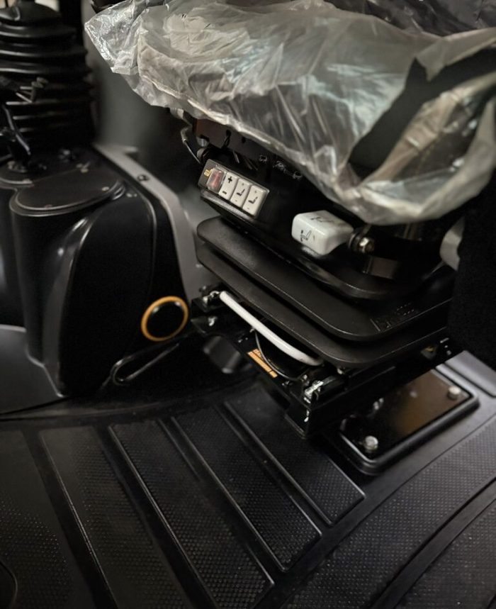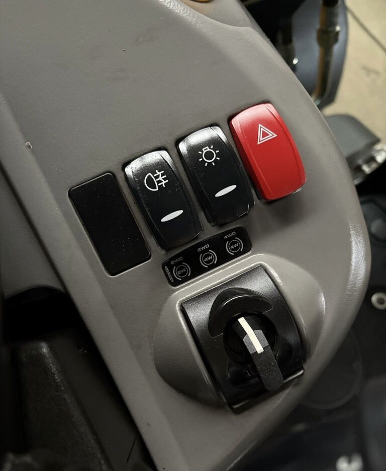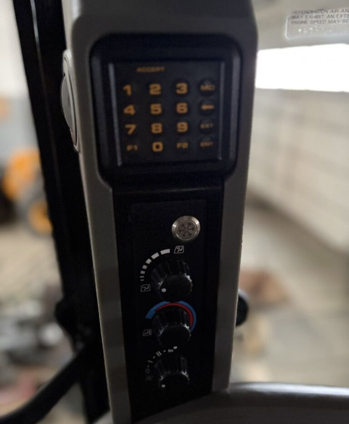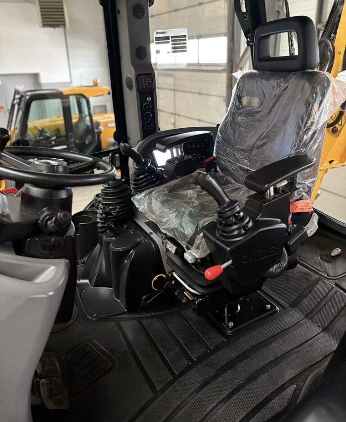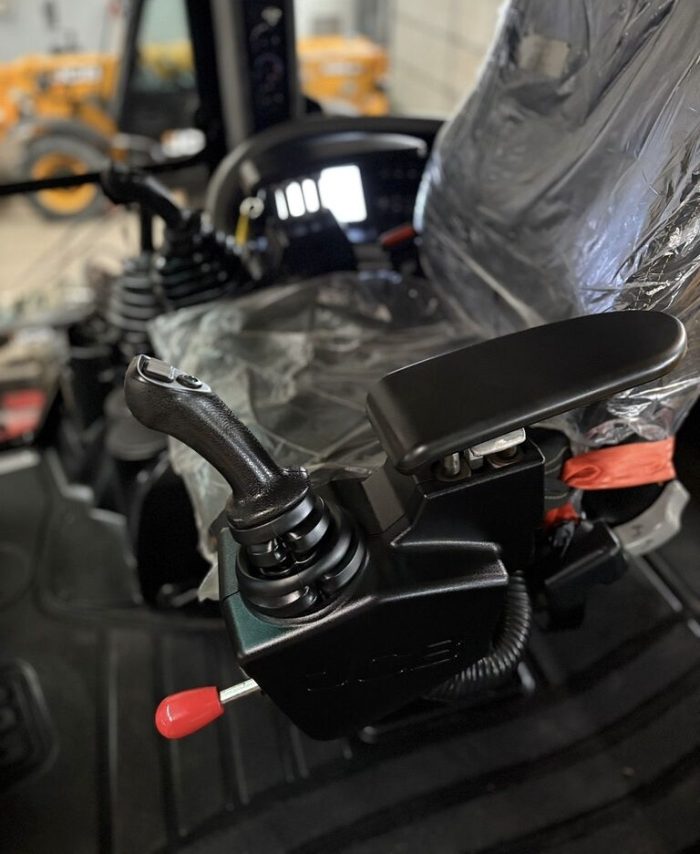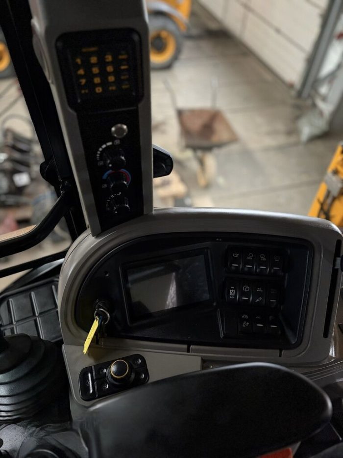 Передний челюстной ковш с быстросъемным соединением 4 в 1 с вилами для поддонов, телескопическая стрела, привод 4×4, управление джойстиком AEC, трансмиссия PowerShift, SRS, возврат в положение копания, кондиционер, Дополнителная гидролиния, TORQUELOCK, POWERSLIDE, пневматическое сиденье оператора с подогревом, передние шины 20 дюймов, задние шины 26 дюймов, гидравлическое быстросъемное соединение, ковш для копания, иммобилайзер, радио.